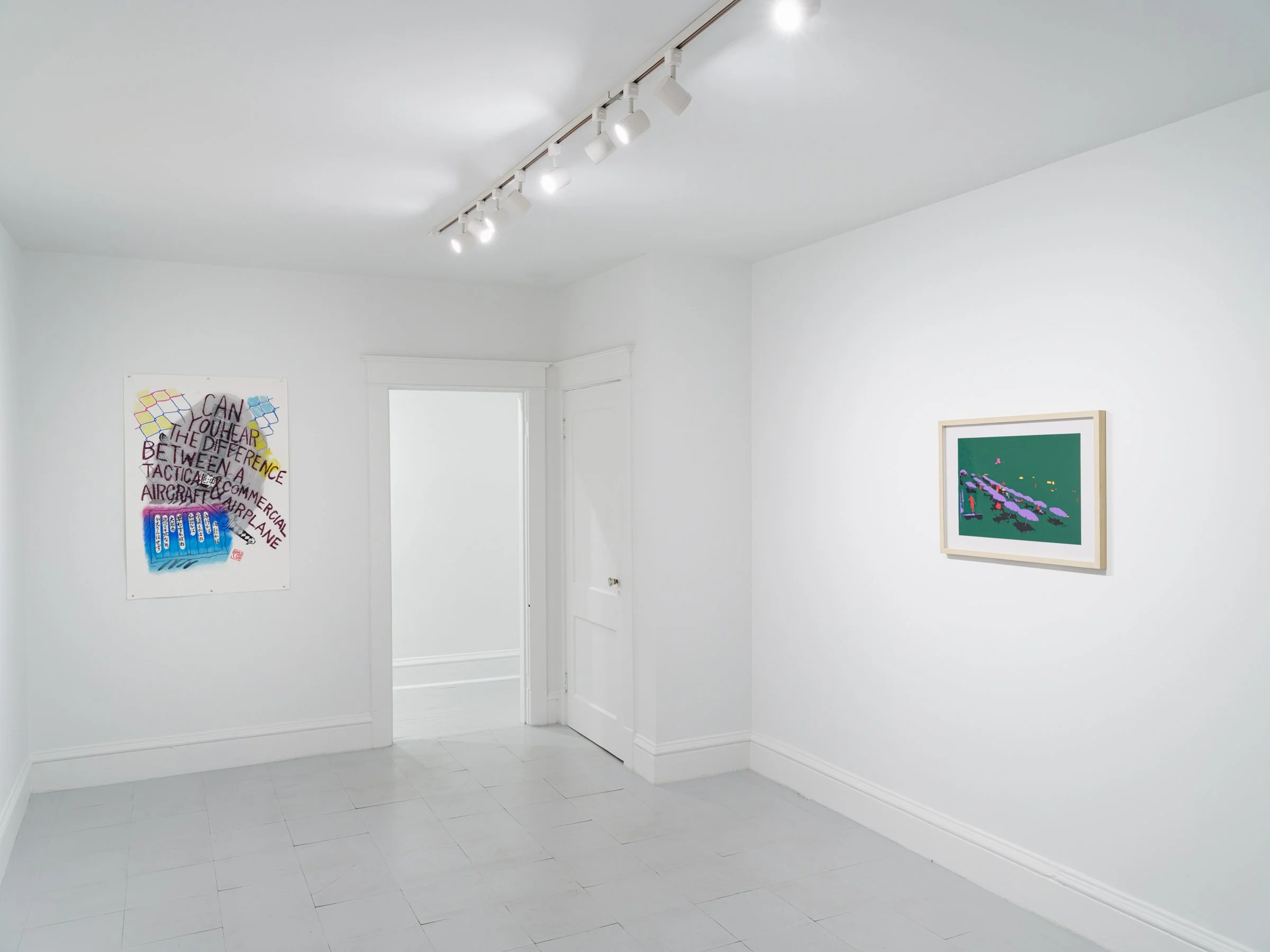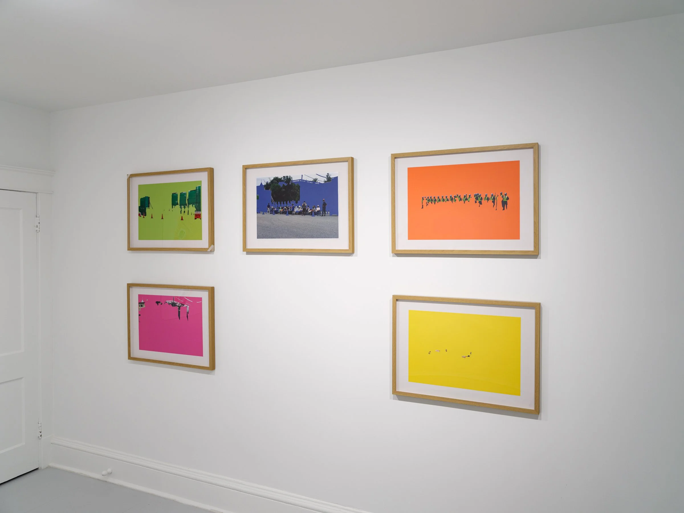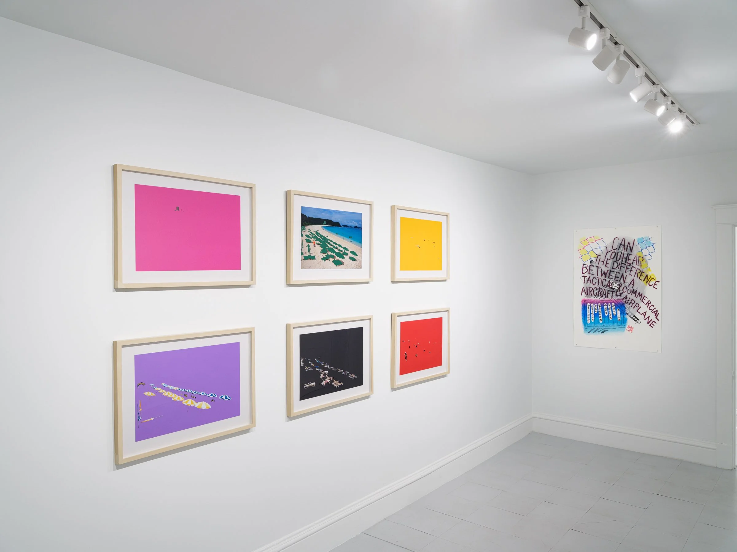 TURLEY is pleased to present Recreation and Violence, a solo exhibition by Aya Rodriguez-Izumi. In this body of recent work, Rodriguez-Izumi explores issues of militarization, occupation, and recreation, specifically in Okinawa, Japan where the artist was born. A series of photo collages explores the concept of “militourism”, an idea crystalized by the late Teresia Teaiwa that points to the phenomenon of war and militarization, paving the way for tourism and obscuring histories of violence. In this series, Rodriguez-Izumi dissects images of protest, leisure, and the everyday moments where military occupation overlaps with tourist play and civilian life. Rodriguez-Izumi explodes images into multiple works that examine these dynamics in palettes influenced by enhanced vision technology like infrared and night vision.