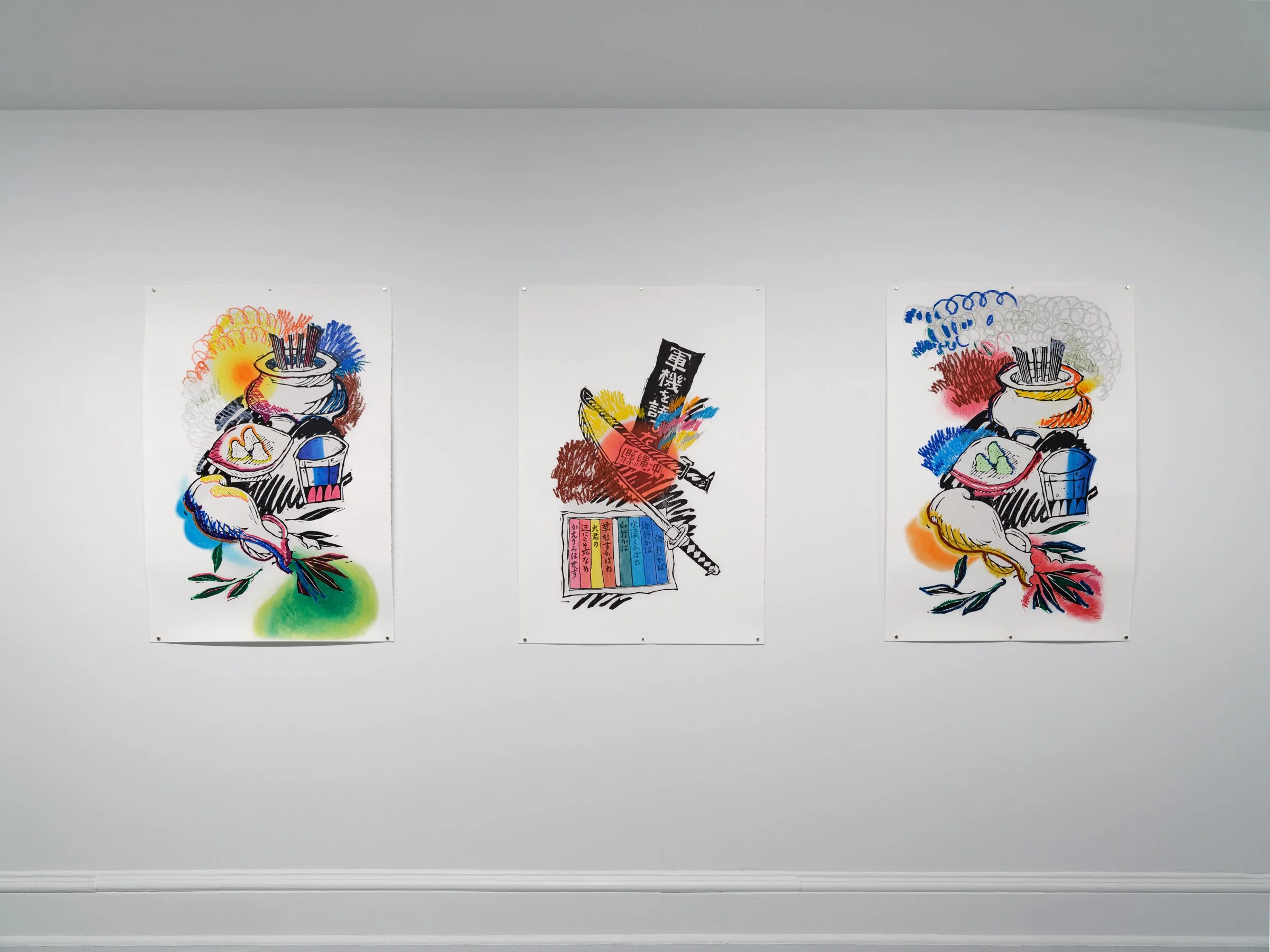 These works on paper are complimented by an audio work created by Douglas Paulson that blends field recordings from Okinawa, transporting audiences to the soundscape that these works are based in, as well as a reading room with a curated collection of books related to Okinawa from the artist’s personal library.