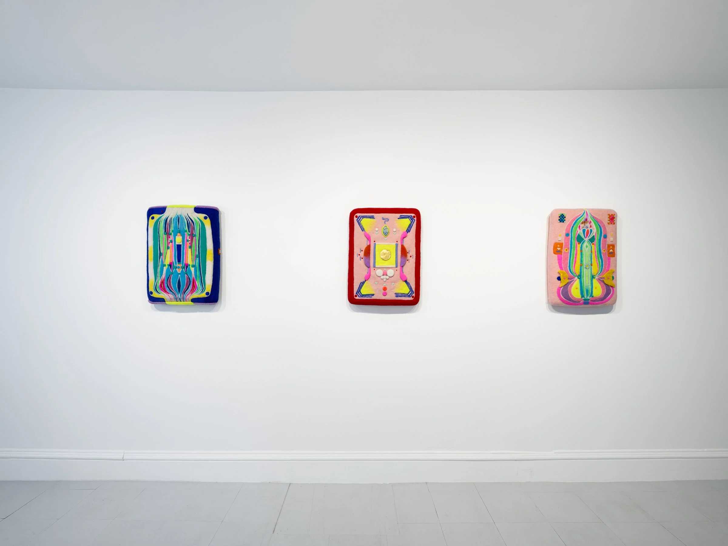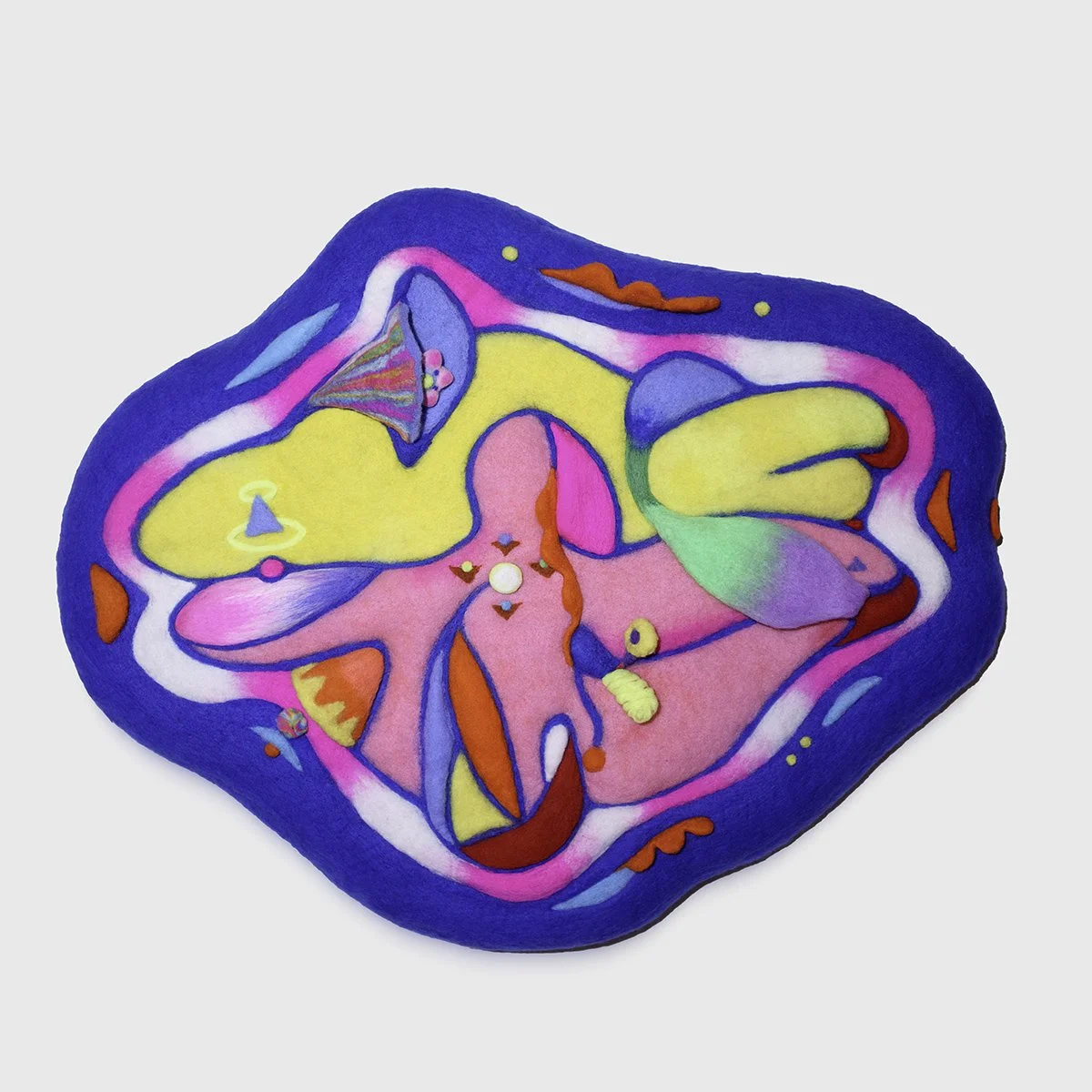 Through the symbolic visual language of fiber and the tactile processes of material engagement, Hsu works with intuitive perception and vibrational resonance, translating states of consciousness, collective energies, symbolic visions, and spiritual transmissions into felted sculptural paintings and tapestries as vibrational remedies. Her practice foregrounds the sensorial and the energetic, positioning material form as a vessel for exploring healing, blessing, and acknowledging multidimensional existence.