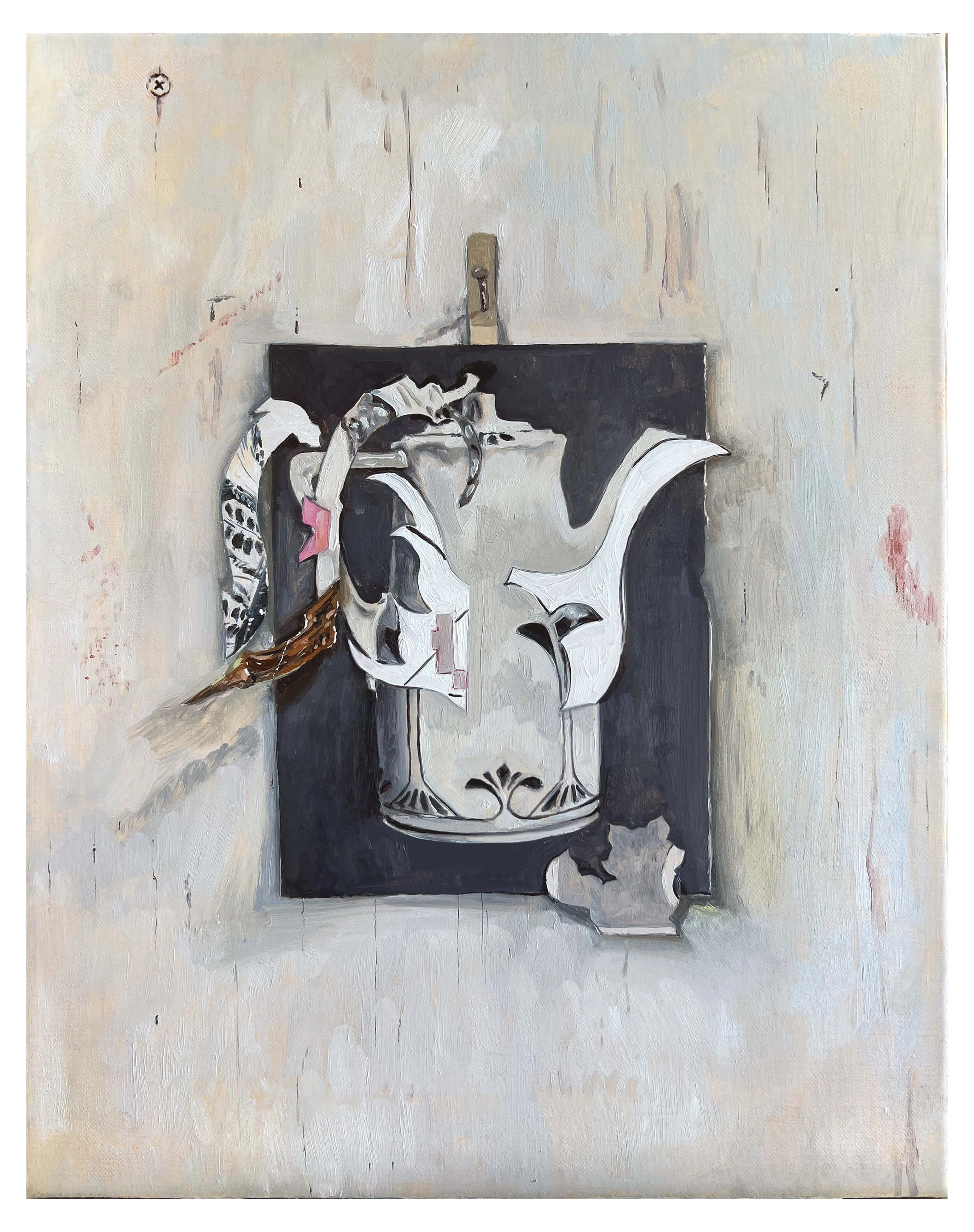 Hank Ehrenfried, Kettle and Kitty, 2024, oil on linen, 15 x 12 inches